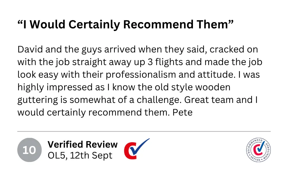 "Hi I'm David and I've been roofing in Oldham for over a decade. I started this business with one goal - to give homeowners a straight, honest service without the hard sell or hidden costs.